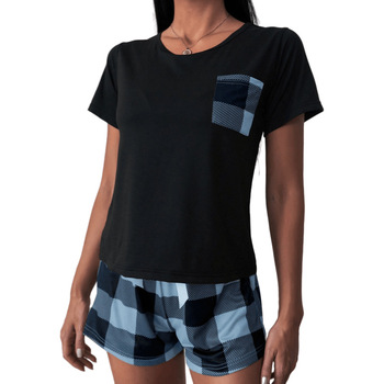 Pyjama d'été à manches courtes pour femmes européennes américaines à carreaux en soie de lait Shorts à col rond Sweet Home Clothes