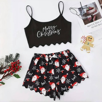 Pyjamas d'été pour femmes Sexy Cami Top Shorts Set Loungewear Homewear Christmas Print Sleepwear